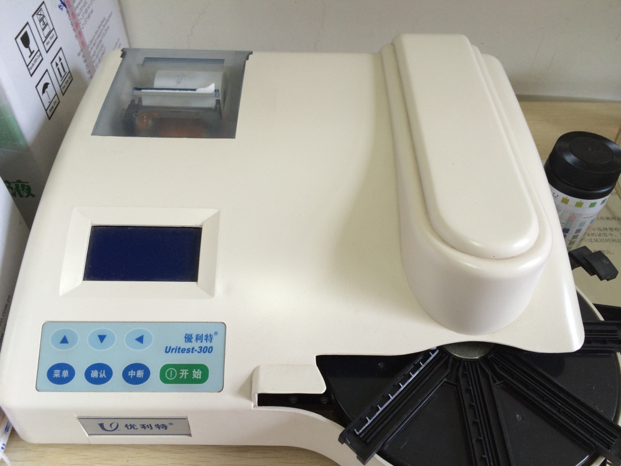 优利特Uritest-300尿液分析仪是根据反射光电比色法原理制成的转盘式送检的分析仪器。配合尿试纸条使用可以快速、准确地测出人体尿液中pH值、亚硝酸盐、葡萄糖、蛋白质、隐血、酮体、胆红素、尿胆原、尿比重、白细胞、维生素C等十一项的指标。