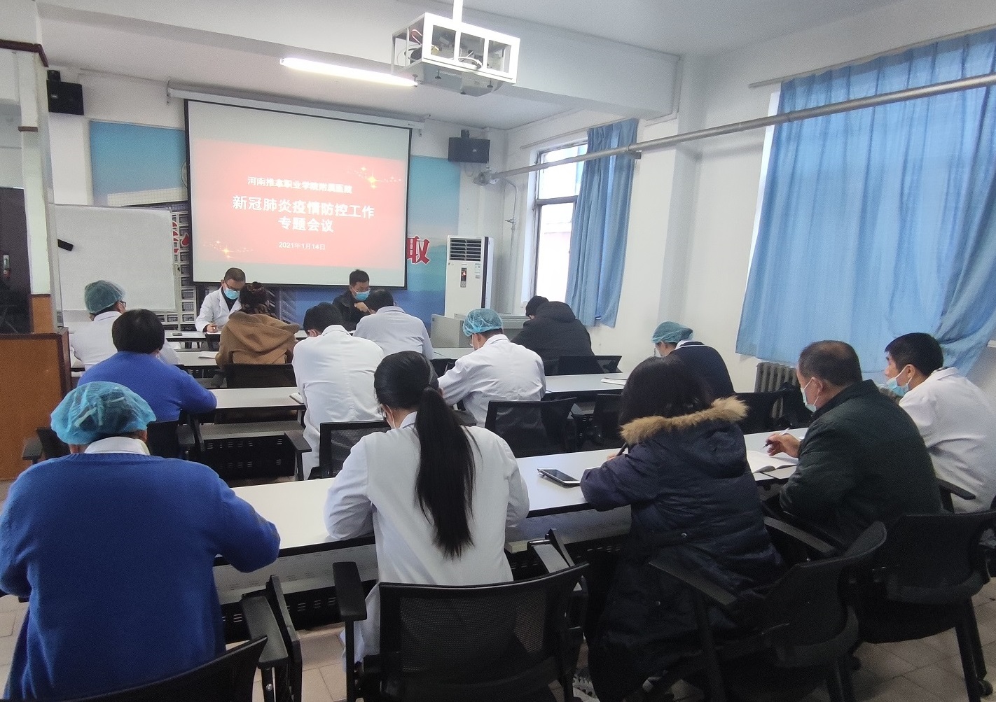 疫情无小事,安全是大事。为进一步做好疫情防控,有效保障人民群众的身体健康,1月11日下午,我院在五楼会议室召开2021年第一次疫情防控重点工作培训会,会议主要由张占栋副院长主持,医院全体职工参加。