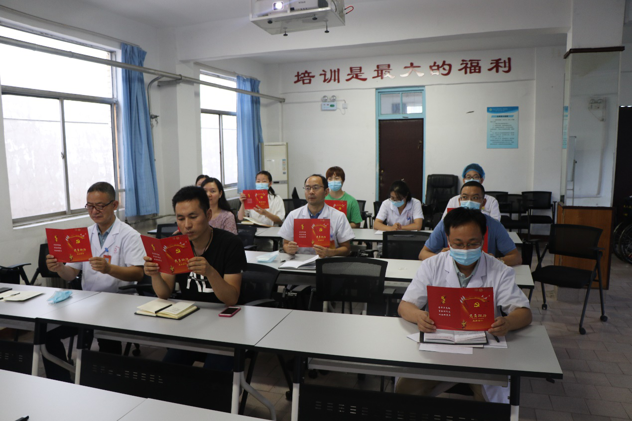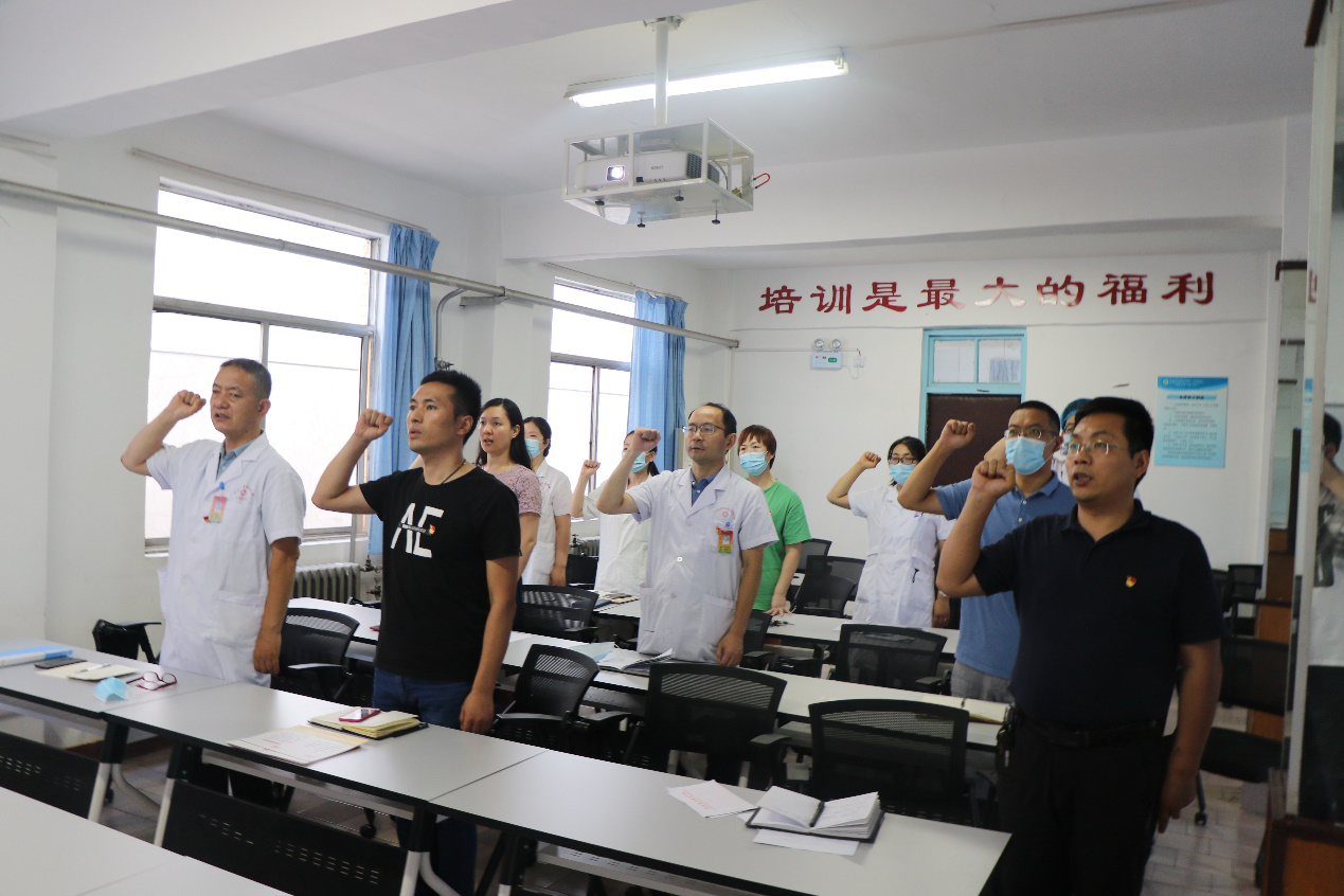 为庆祝中国共产党成立99周年,教育引导党员坚定理想信念,增强党史党性教育,附属医院党支部于6月28日上午开展了以“牢记初心使命、争当出彩先锋”为主题的党日活动。