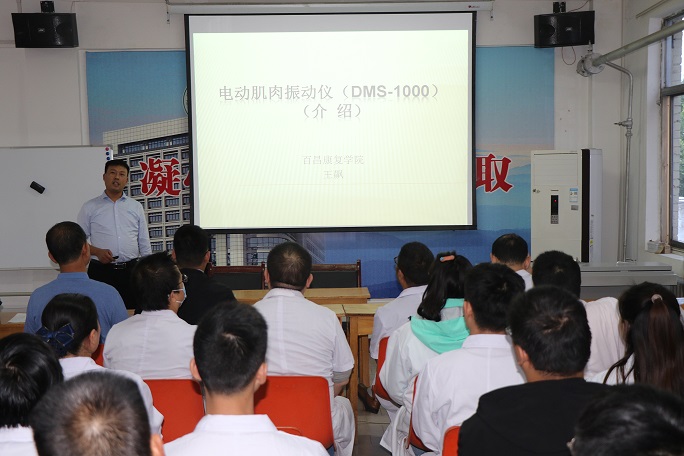 为进一步促进我院技术水平提升,更好的为广大患者服务,9月19日下午四点,在医院五楼会议室,附属医院特邀请北京百昌康复医院王飙老师,对我院医务人员及实习生进行“电动肌肉振动仪”的操作技术指导。