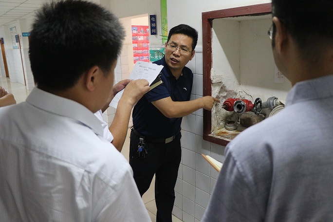 为贯彻落实省教育厅、省民政厅关于“安全生产月”的工作部署,进一步提升医院安全防控能力,着力消除各类安全隐患,有效预防和减少安全事故的发生,切实加强医院端午节假日期间的安全生产工作,2019年6月6日上午,学院党政办副主任方德福、保卫处副处长杨雷霆、后勤处副处长毕小万等组成的联合检查组对我院进行了安全生产大检查。