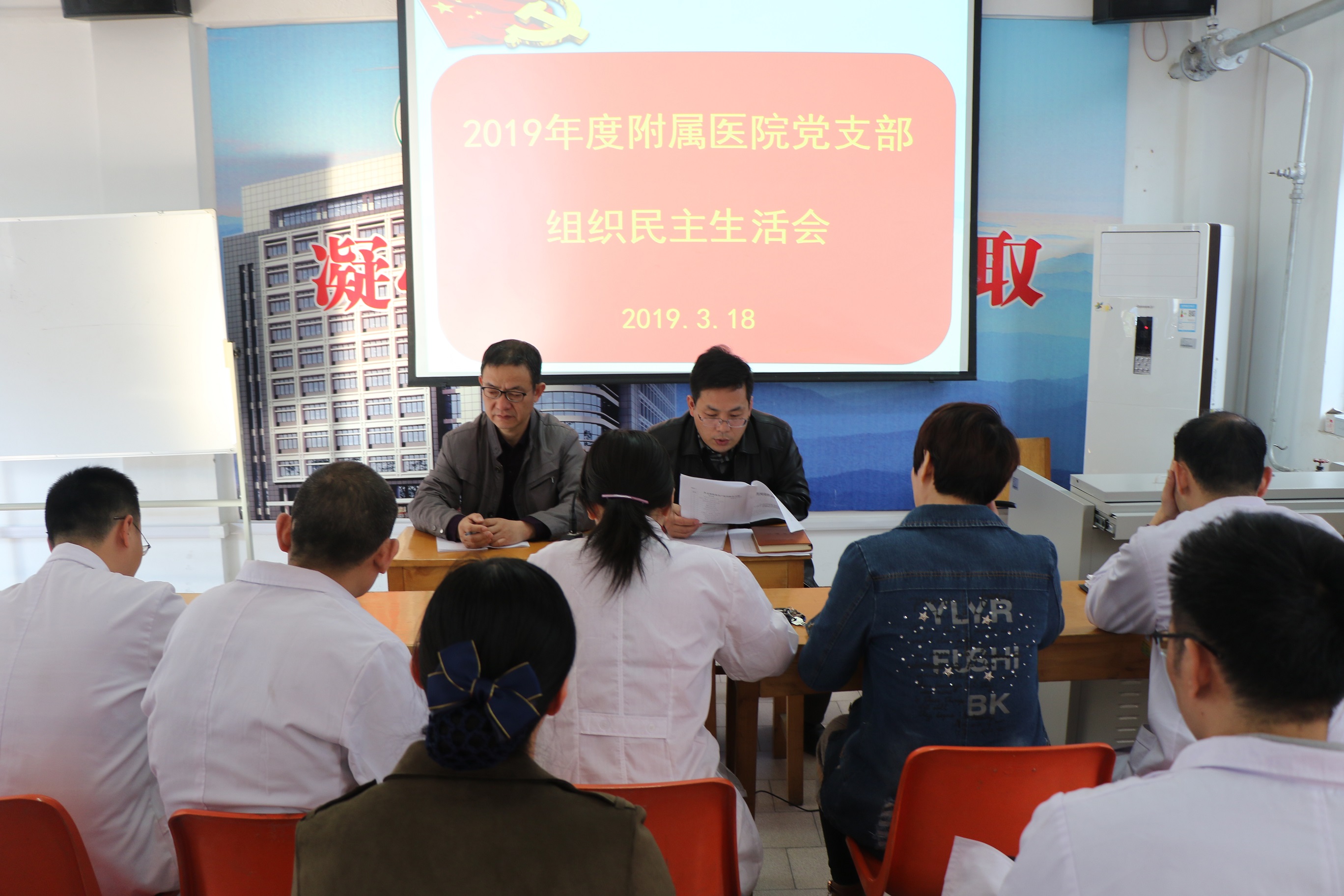 为深入学习贯彻习近平新时代中国特色社会主义思想,推进“两学一做”学习教育常态化制度化,根据学院关于召开基层党支部组织生活会和开展民主评议党员的通知要求,3月18日下午,我院党支部在五楼会议室召开了“2019年度附属医院党支部组织民主生活会”,张占栋同志主持会议,全体党员、预备党员、入党积极分子和群众代表二十余人参加了会议。