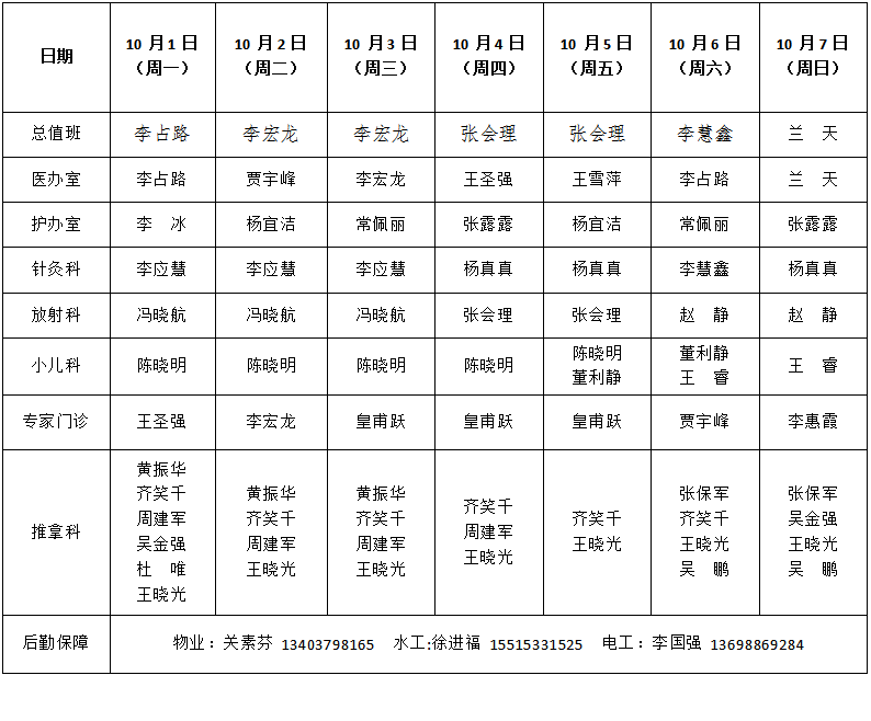 为方便节日期间患者就诊,期间医院诊疗工作正常开展,医师出诊安排如下: