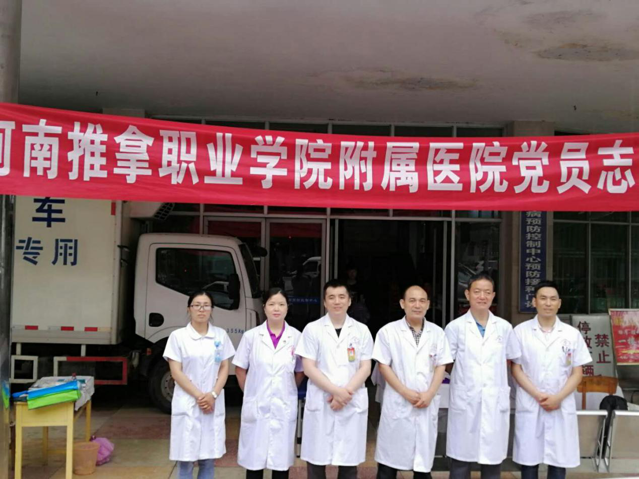 为进一步践行党的十九大精神,弘扬中医文化,推广“河洛推拿”绿色疗法,7月4日下午,唐海峰副院长带领河南推拿职业学院附属医院6名党员志愿者深入洛宁县疾病预防控制中心进行“牢记党的宗旨,服务百姓健康行动”义诊活动。