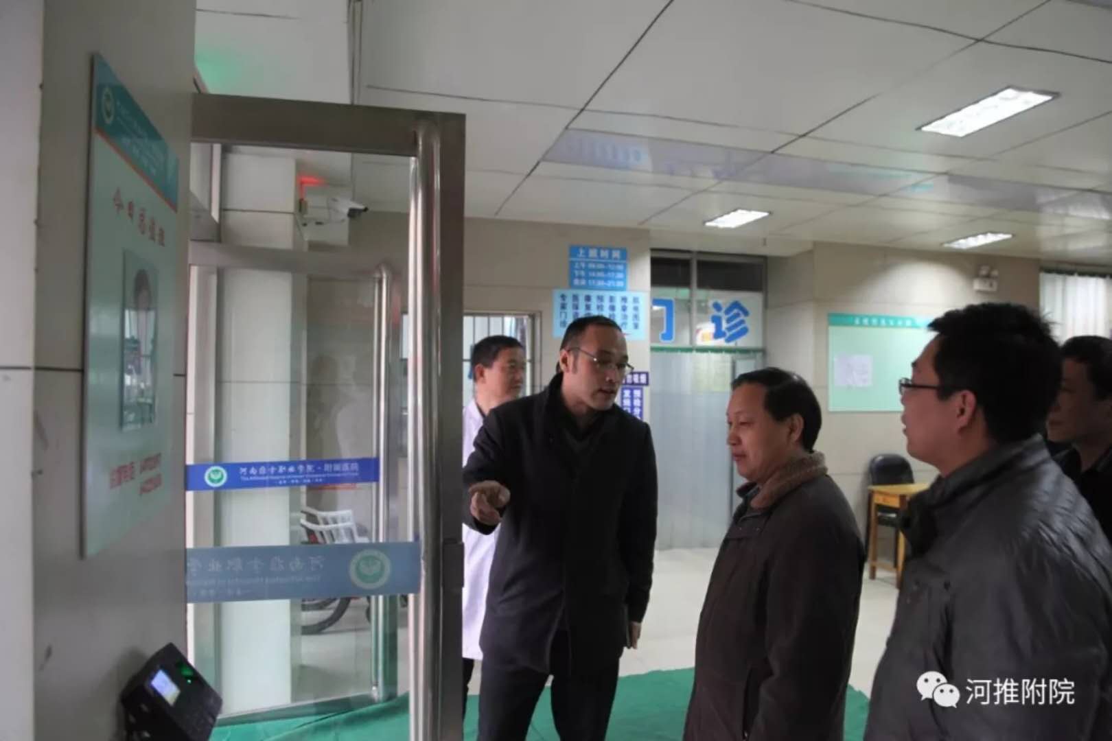 3月4日下午,河南推拿职业学院党委副书记、纪委书记王松泉带领党政办公室副主任郭伟及宣传部、保卫处等同志对附属医院进行了新春慰问及卫生、安全检查。