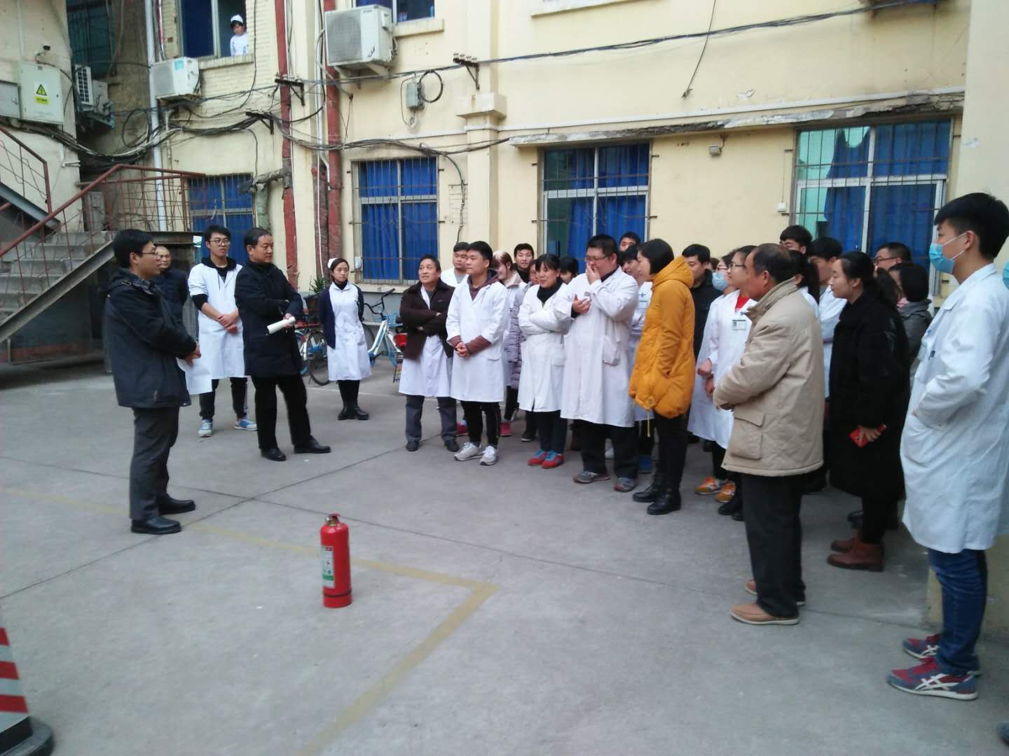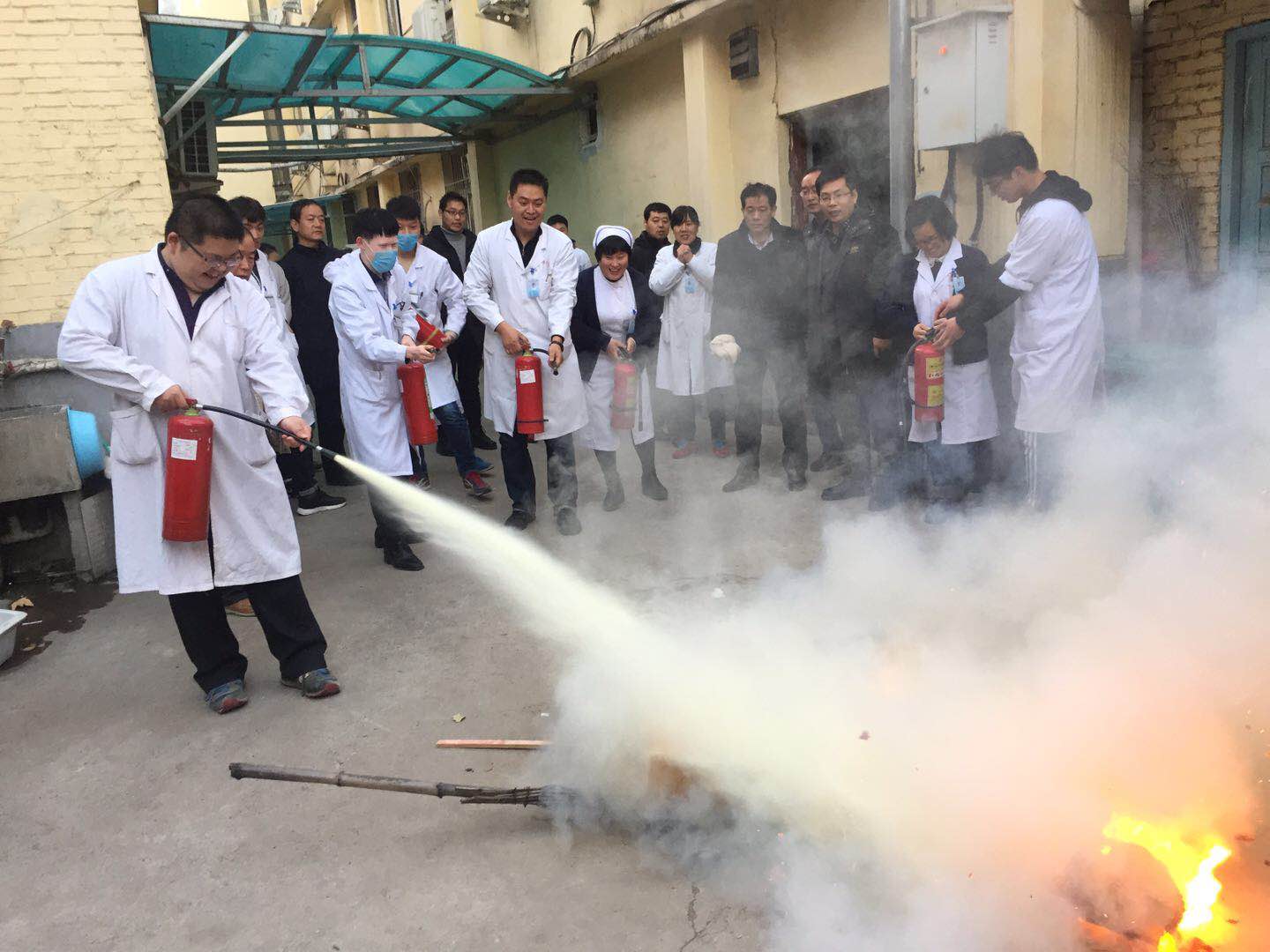 为贯彻落实学院12月1日消防安全大检查及洛阳市涧西区卫计委今冬明春火灾防控工作要求,进一步增强消防安全意识,提高火灾防控能力和突发事件应变能力,附属医院于12月20日下午开展了实战消防安全演练,医院全体职工、实习生、住院病人共70多人参加了演练。