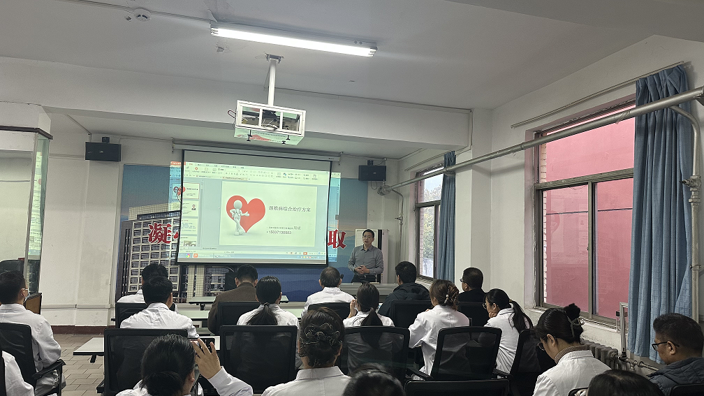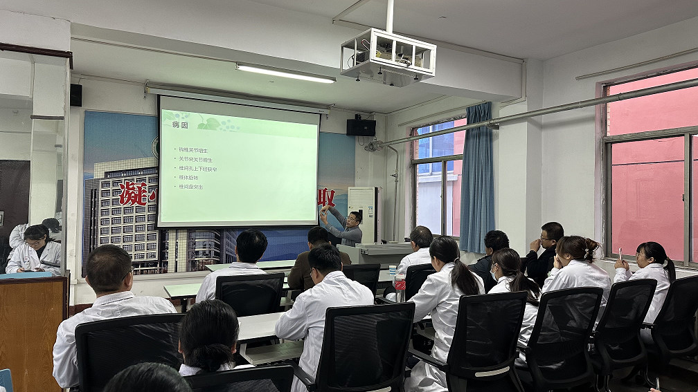 培训过程中,周斌主任以其深厚的学术造诣和丰富的临床经验,通过生动的案例分析、声色并茂的讲解等方式,围绕“腰椎间盘突出症的综合治疗、颈椎病的综合治疗方案”的特点、病因、定位诊断与治疗原则等进行了深入浅出的讲解,为参会医护人员提供了一次难得的学习机会。