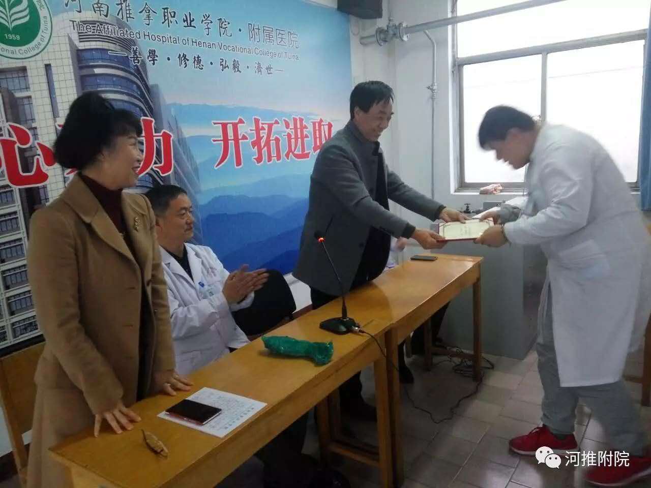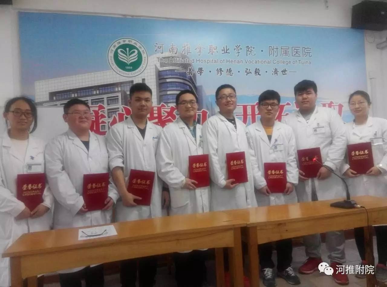 首先,郭新科院长宣读了附属医院《关于表彰2016-2017年度优秀实习生的决定》,并分别对白振伦、宋永康等八名优秀实习生颁发了荣誉证书。
