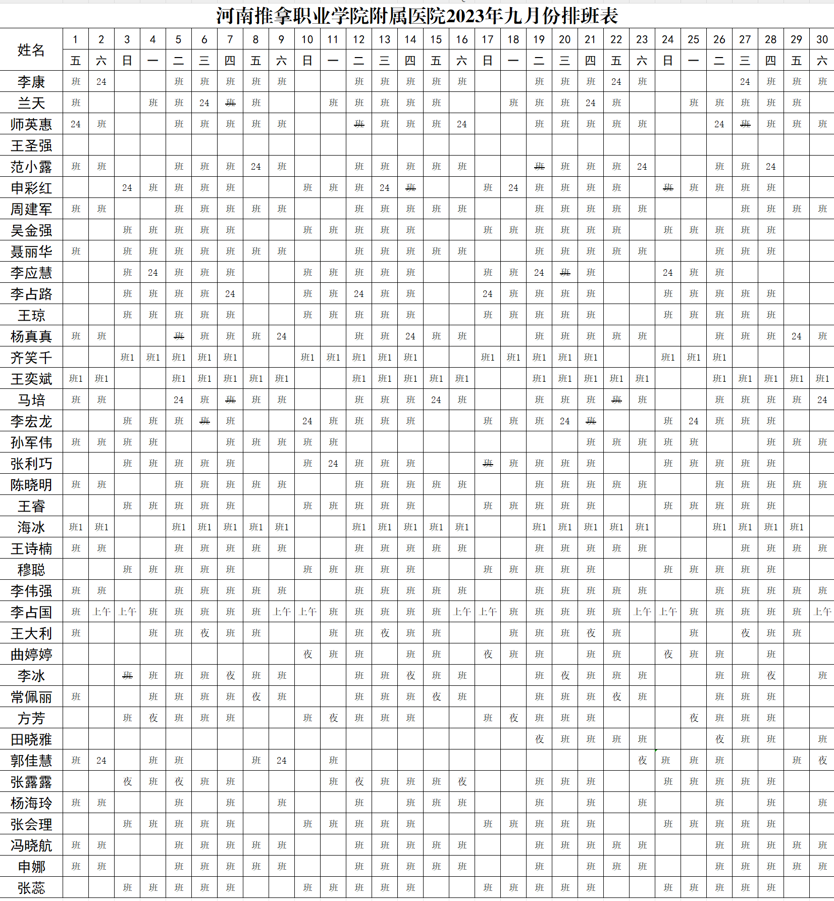 为保证您的治疗,在来院治疗前请查询此排班表,并及时与大夫预约。由此,给您带来的不便,敬请谅解。