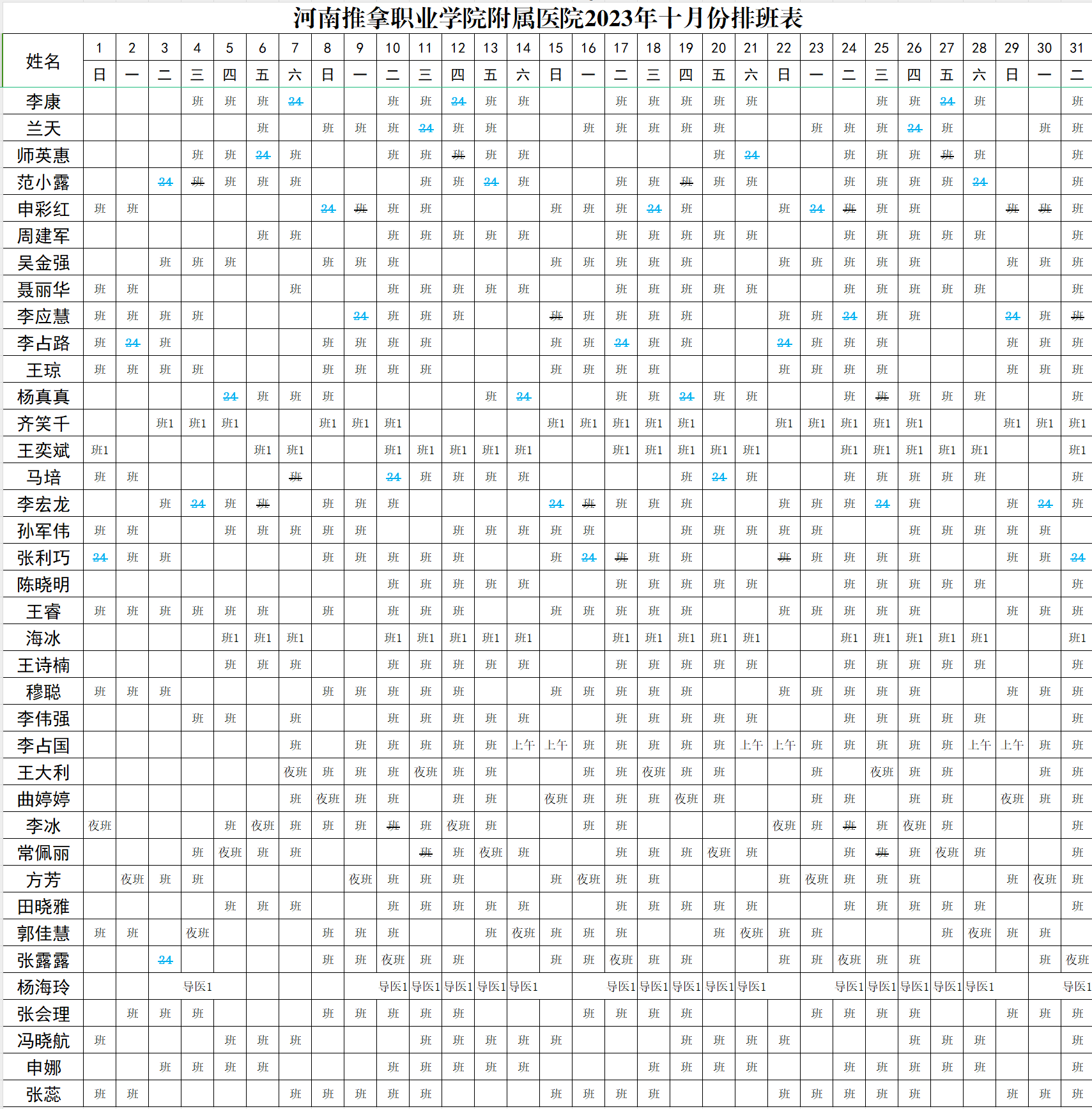 河推附院2023年10月医师排班