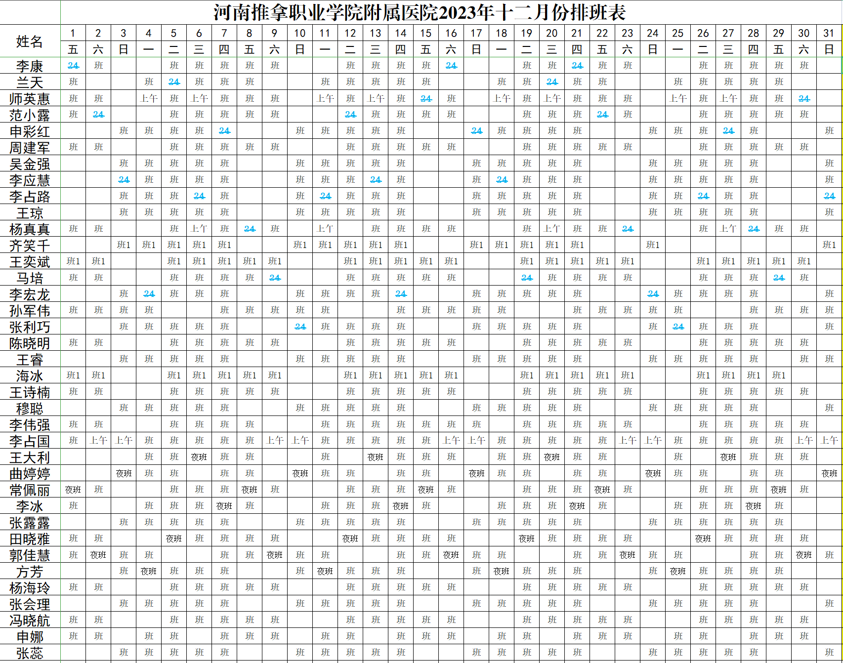 为保证您的治疗,在来院治疗前请查询此排班表,并及时与大夫预约。由此,给您带来的不便,敬请谅解。