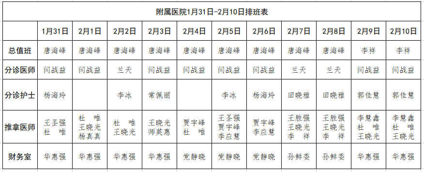 河推附院2020年2月份医师排班表