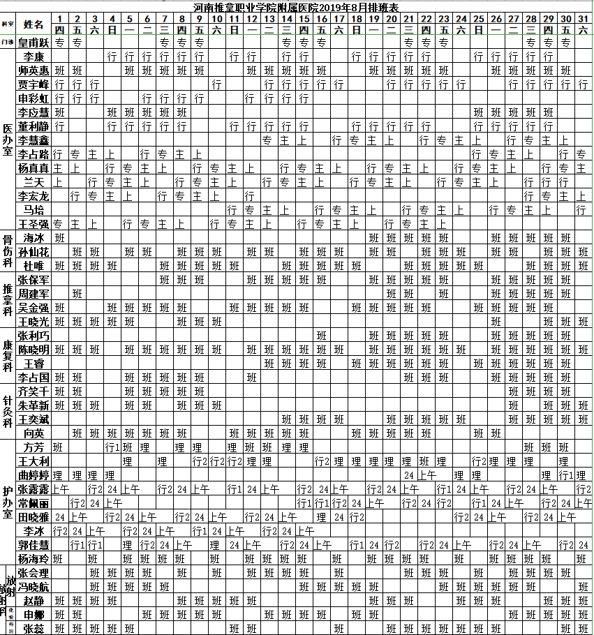 为保证您的治疗,在来院治疗前请查询此排班表,并及时与大夫预约。由此,给您带来的不便,敬请谅解。