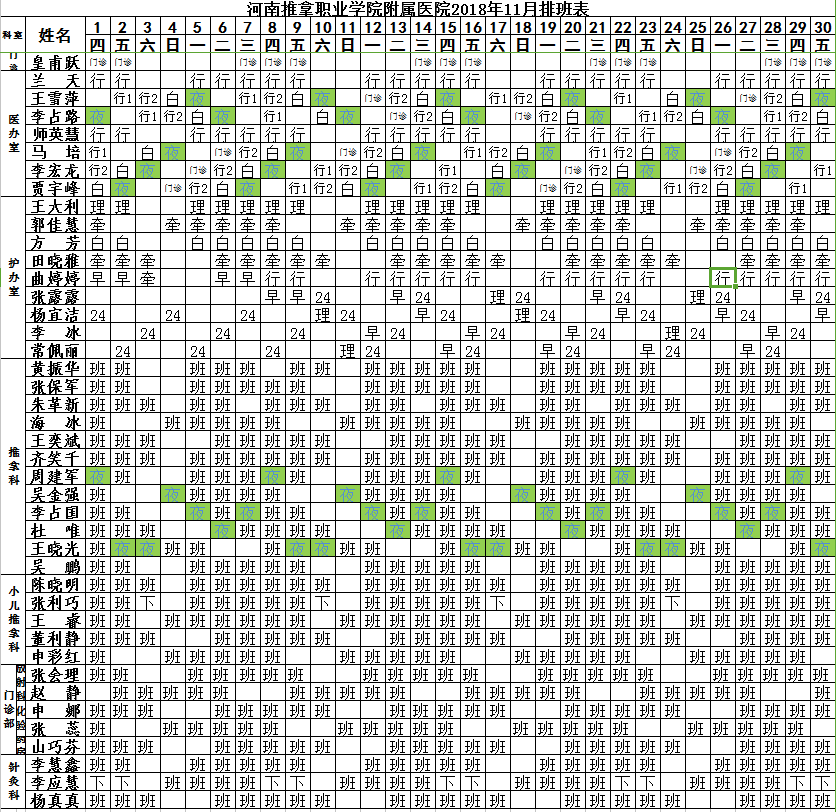 为保证您的治疗,在来院治疗前请查询此排班表,并及时与大夫预约。由此,给您带来的不便,敬请谅解。