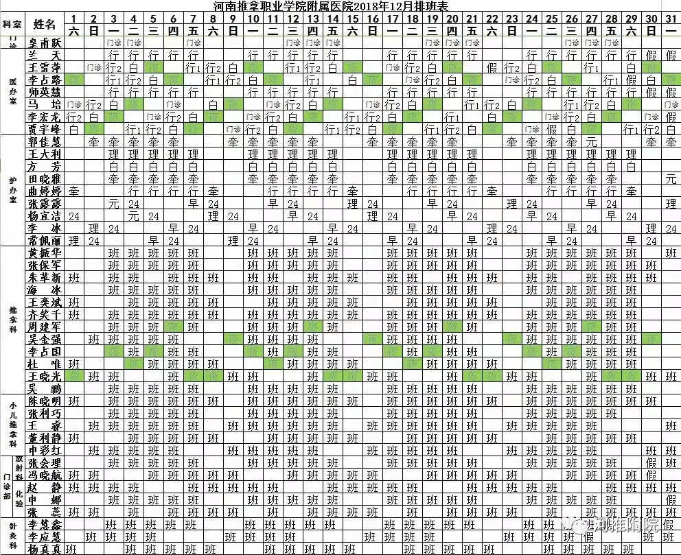 河推附院2018年12月份医师排班表