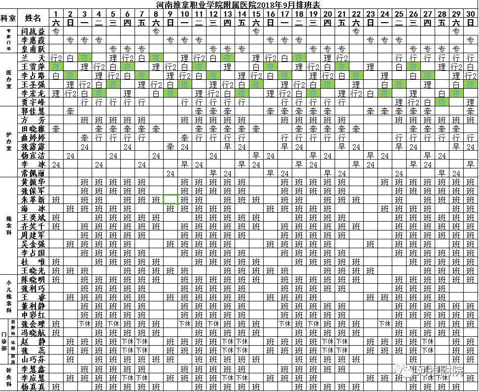 为保证您的治疗,在来院治疗前请查询此排班表,并及时与大夫预约。由此,给您带来的不便,敬请谅解。