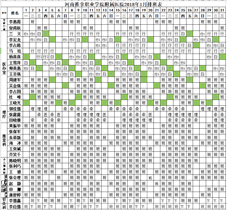 为保证您的治疗,在来院治疗前请查询此排班表,并及时与大夫预约。由此,给您带来的不便,敬请谅解。