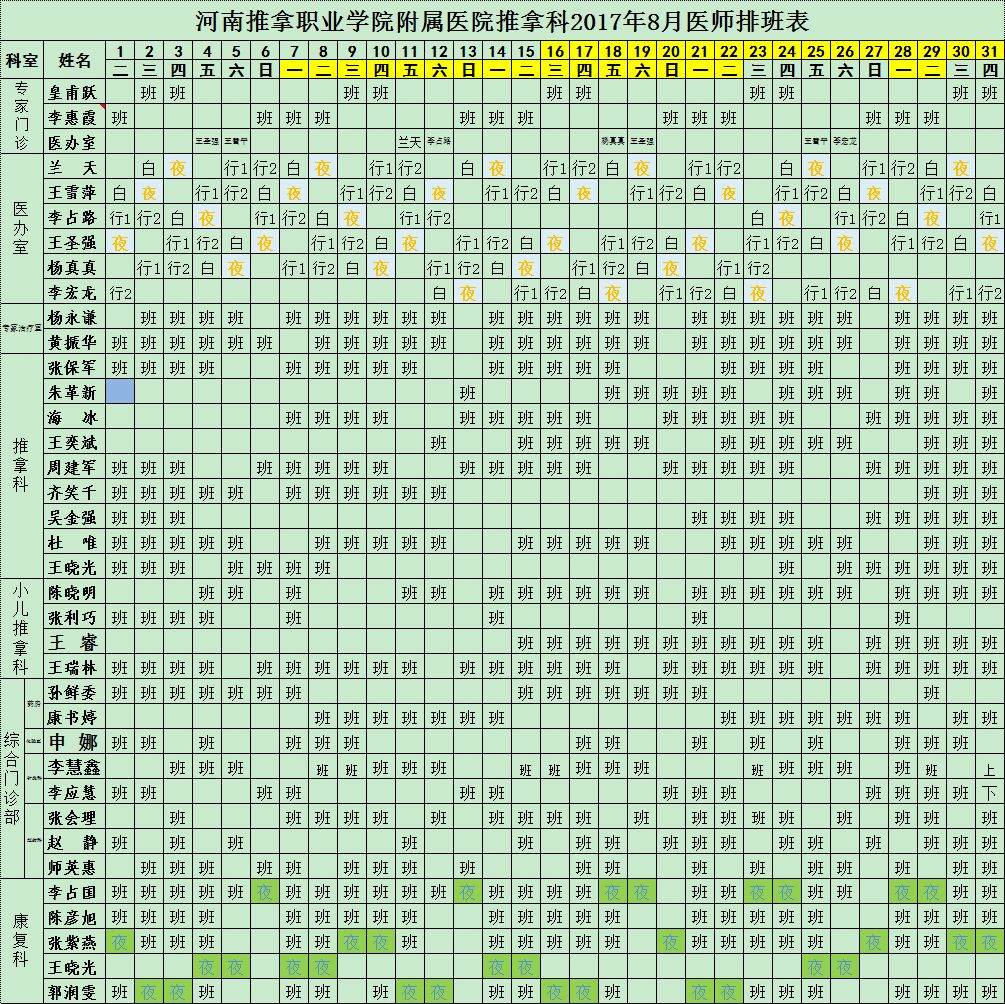 为保证您的治疗,在来院治疗前请查询此排班表,并及时与大夫预约。由此,给您带来的不便,敬请谅解。