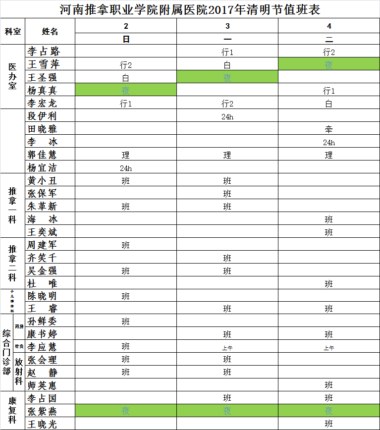 河推附院2017年清明节出诊安排通知