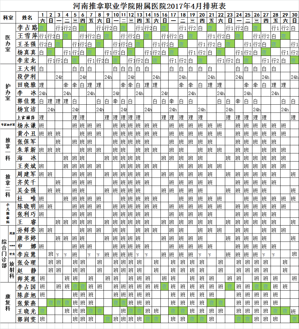 为保证您的治疗,在来院治疗前请查询此排班表,并及时与大夫预约。由此,给您带来的不便,敬请谅解。