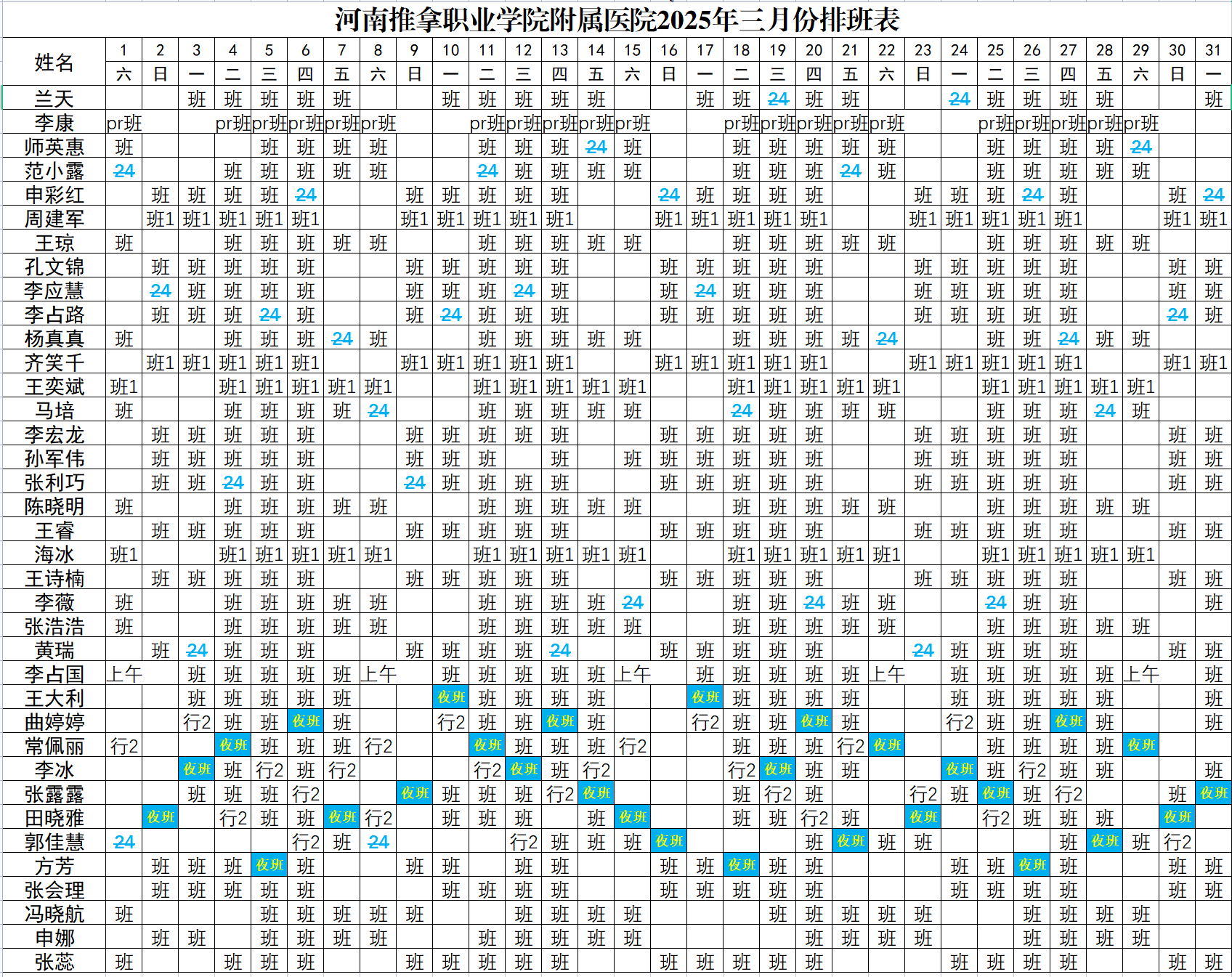 河推附院2025年3月医师值班