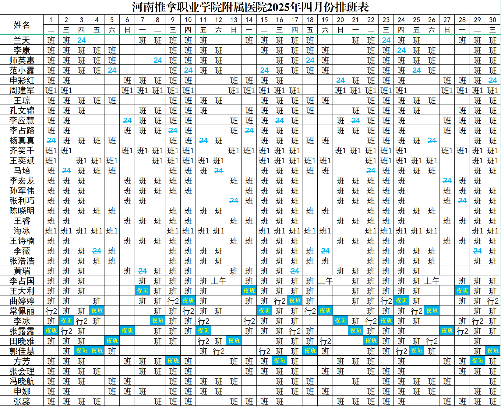 为保证您的治疗,在来院治疗前请查询此排班表,并及时与大夫预约。由此,给您带来的不便,敬请谅解。